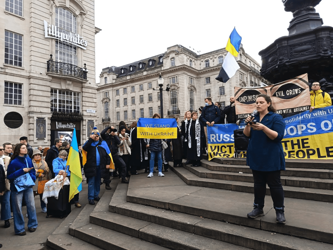 Below is the speech given by Nadia Eljadid, a UK-based activist in US organisation Indivisible, at the Ukraine solidarity protest in London on 21 February. (Nadia pictured at the protest above.) It was written by her and fellow Indivisible activist Alyssa Elliott. We hope to publish more of the speeches soon. Solidarity with those facing … Continue reading “For dictators, ‘peace’ is when we don’t fight back”