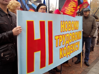 The Parliament of Ukraine, the Verkhovna Rada has adopted in its first reading a new draft Labour Code (draft law №1658). It is a major attack on the right of the workers of Ukraine and their trade unions. At the same time an amendment to protect workers from -discrimination on grounds of gender and sexual orientation failed to be carried. A mass protest organised by the Confederation of Free Trade Unions took place outside the Parliament. Published below is a translation of the appeal issued by the KVPU calling for the protest.