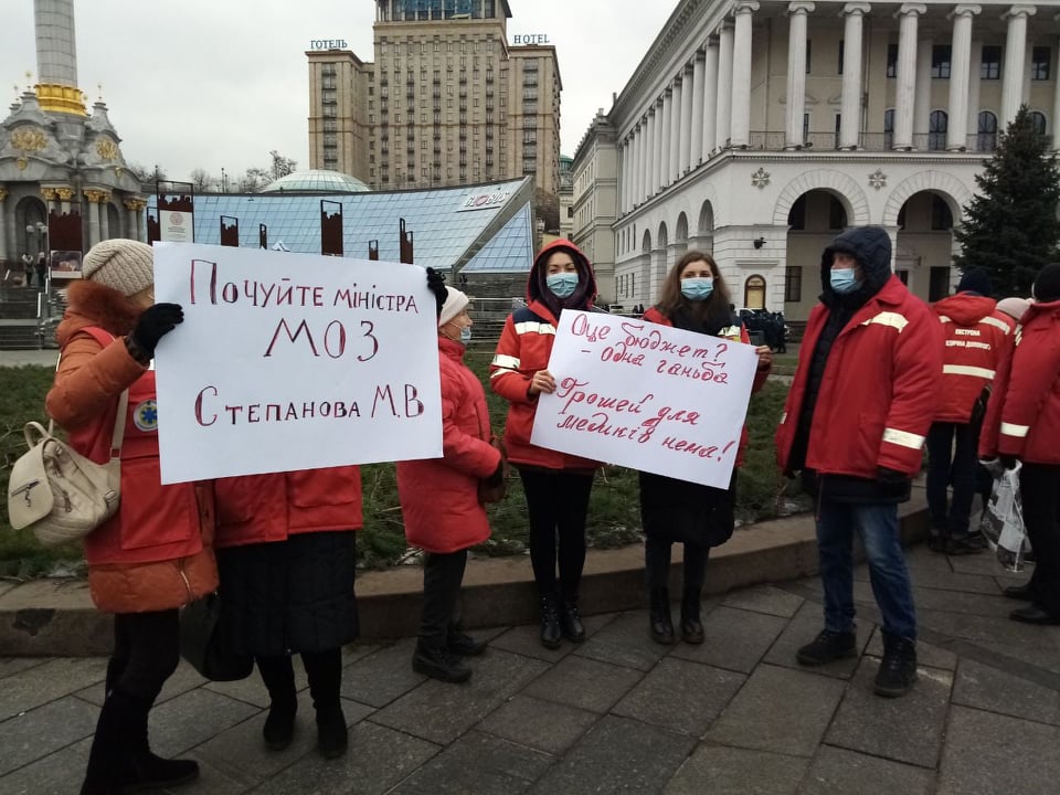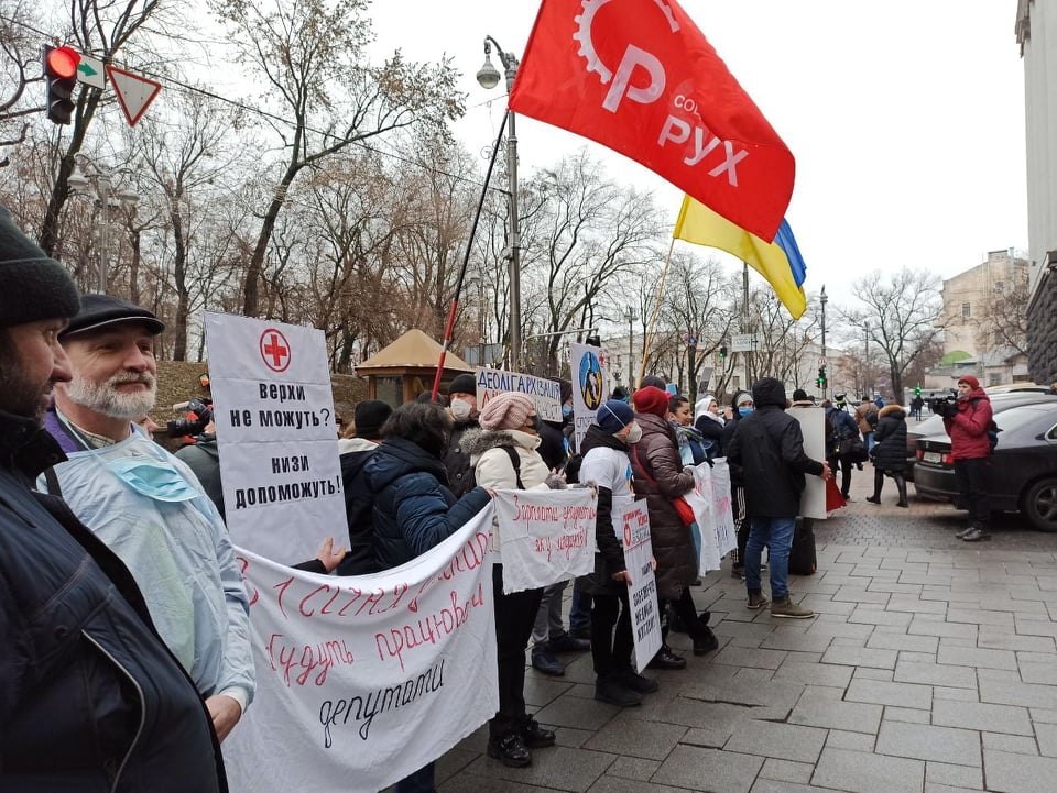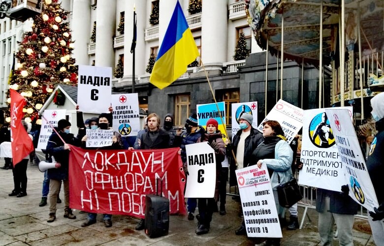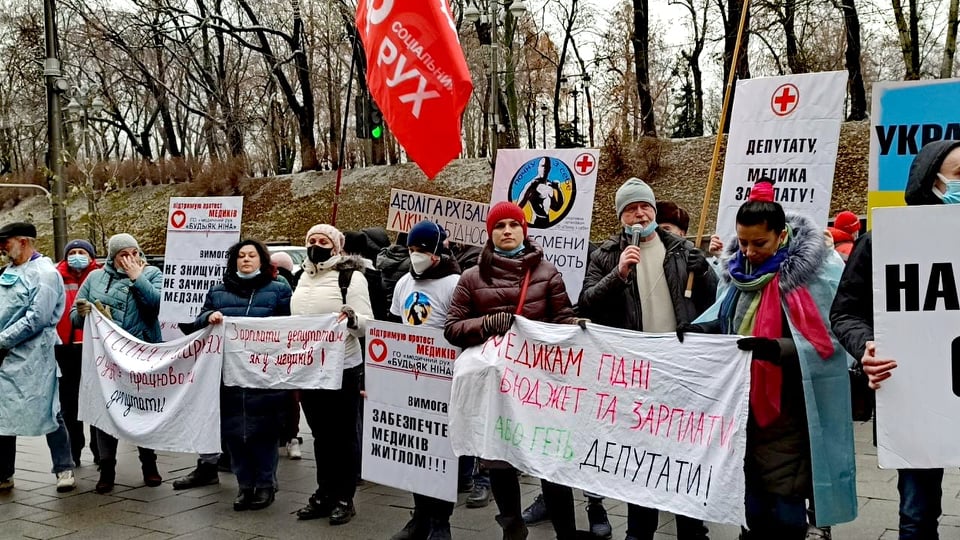 The protests throughout Ukraine on “action to improve health care” took place on 16 December 2020. Health workers united around a series of demands which to some extent dealt with the allocation of budgetary costs. But just the day before the protest, the Deputies fulfilled the worst expectations: on 15 December they approved a budget for 2021 which effectively does not deal with coronavirus. In the first instance it means one more year of humiliation, fear and risk to people’s lives. Healthcare workers’ anger was without bounds: They talked about buying medication with their own money, being pressured to undertake unpaid work, the removal of guarantees for mothers … Thus the healthcare community declared to all central bodies of power that they intended to fight in the new year against the violation of their rights.