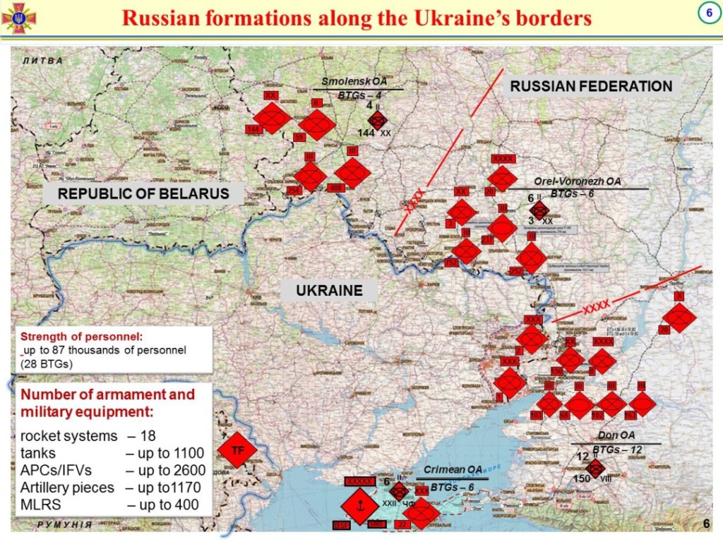 There are 100,000 troops now surrounding Ukraine. The aim is to intimidate Ukraine, to try to persuade it, and the EU and NATO, to drop or adopt certain actions. I think these are the most important: