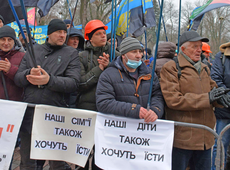 “If paid on time, my family would not be poor,” a miner from Chervonograd at the Kyiv protest said. He was holding a banner that read “Our children also want to eat.” He explained he is consistently paid in installments that amount to only 6% to 20% of his wage. “Because of this you often have nothing to buy with. You have to take loans, and then you don’t know how to repay them.”