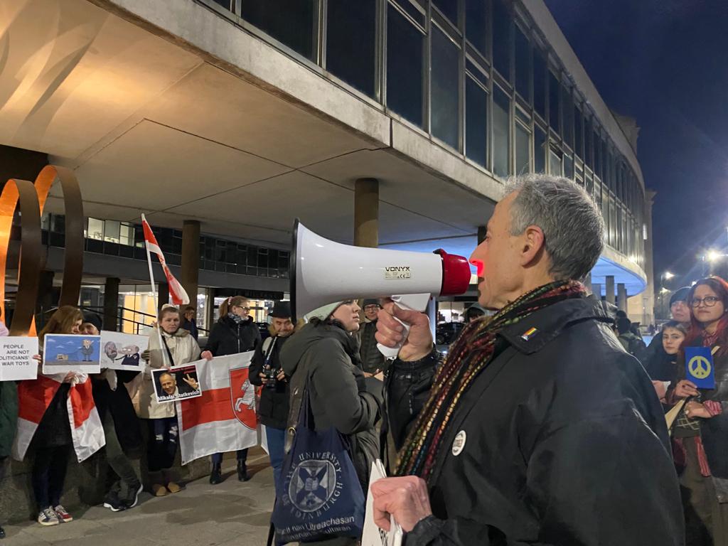 A number of messages of Solidarity were read to the protest by Christopher Ford of the Ukraine Solidarity Campaign.