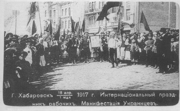 During the Ukrainian Revolution in 1917 there was mass demonstrations on May Day across Ukraine and by Ukrainians in the Russian Empire, calling for social and national liberation.