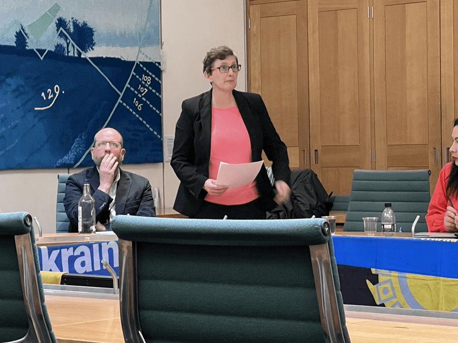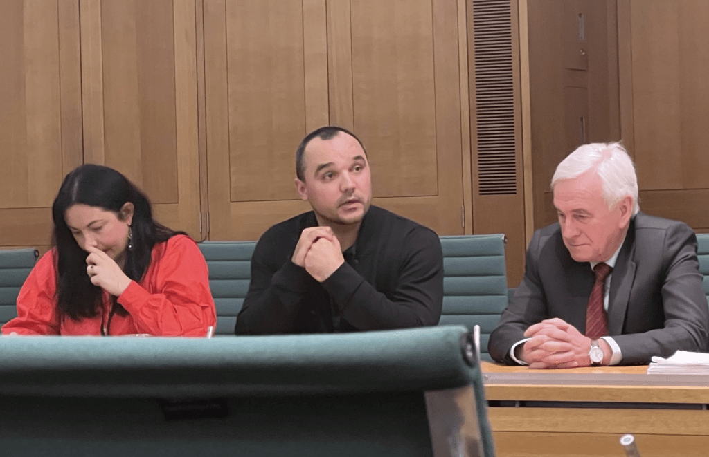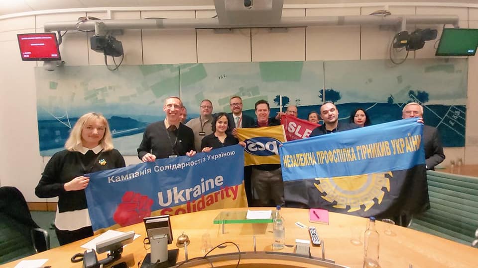 Amongst a range of events to mark the anniversary of Russia’s all-out invasion the Ukraine Solidarity Campaign held a public meeting in Parliament hosted by Lloyd Russell-Moyle MP on 21 February. The event was packed to hear platform which included Oksana Holota of the KVPU (Confederation of Free Trade Unions), Yuliya Yurchenko of Sotsialny Rukh (Social Movement) and Pavlo Holota of NGPU (Independent Union of Mineworkers). A range of speakers from the UK Labour movement declared their commitment to ongoing to solidarity with the Ukrainian people.