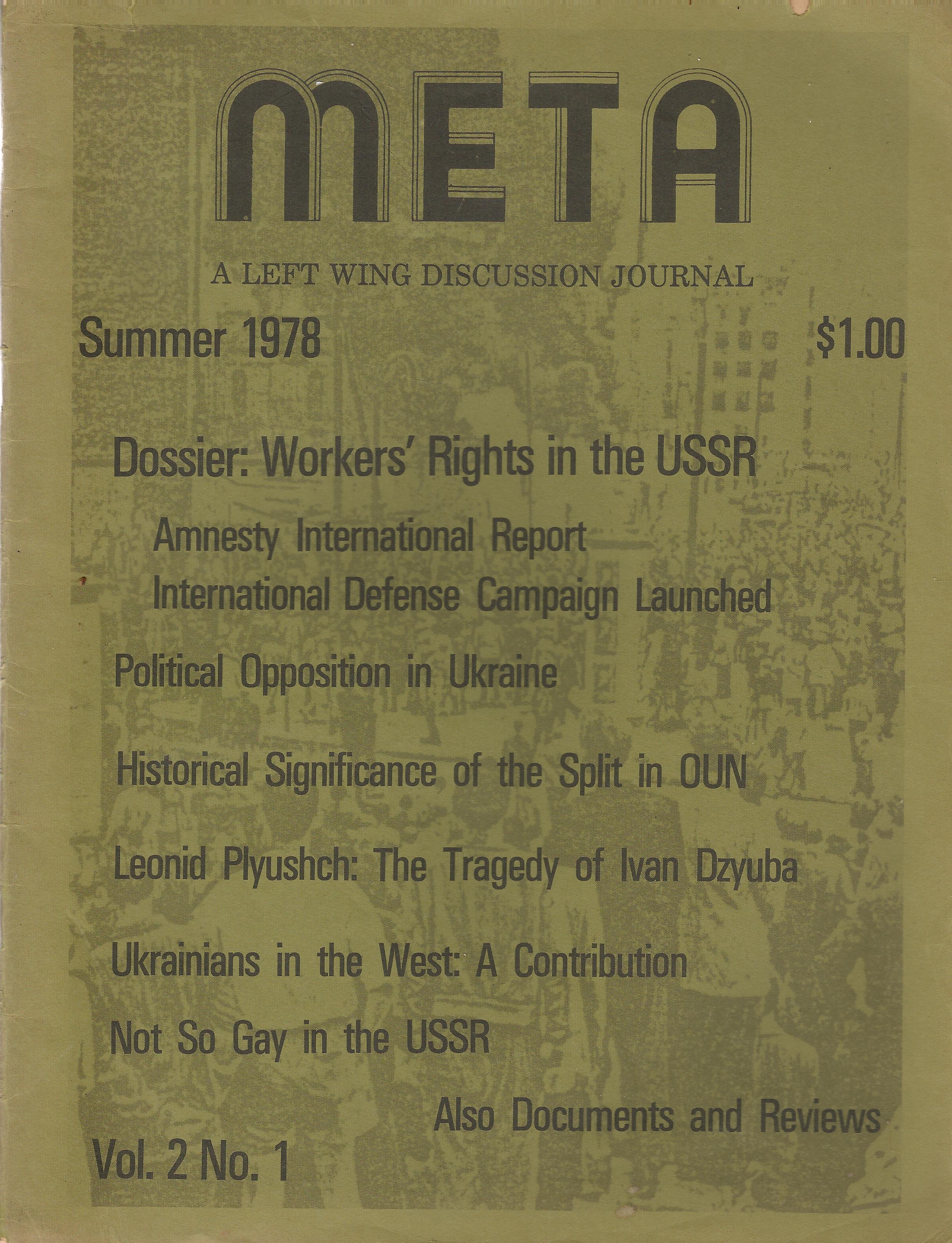 Marko’s democratic and socialist orientation were in many ways a re-connection with what had been the mainstream of the Ukrainian movement that existed before the OUN. In 1972 Marko was involved with students in a hunger strike in defence of Soviet political prisoners, and it was through this student activism Ukrainian new left took shape amongst some of the youth of the diaspora. In 1975 they began producing META, A Left-Wing Discussion Journal (in (English) and Dialoh (in Ukrainian) in 1977, which declared itself ‘For Democracy and Socialism in an Independent Ukraine’. They tried to pose an alternative to the conservatism of the old right in the Ukrainian Canadian community, and the Communist Party dominated Association of United Ukrainians