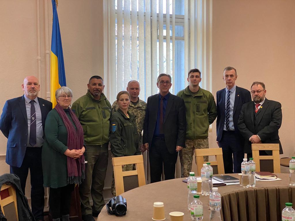Below: ASLEF General Secretary with voluteers of the Territorial Defence Force in Kyiv in February 2023.