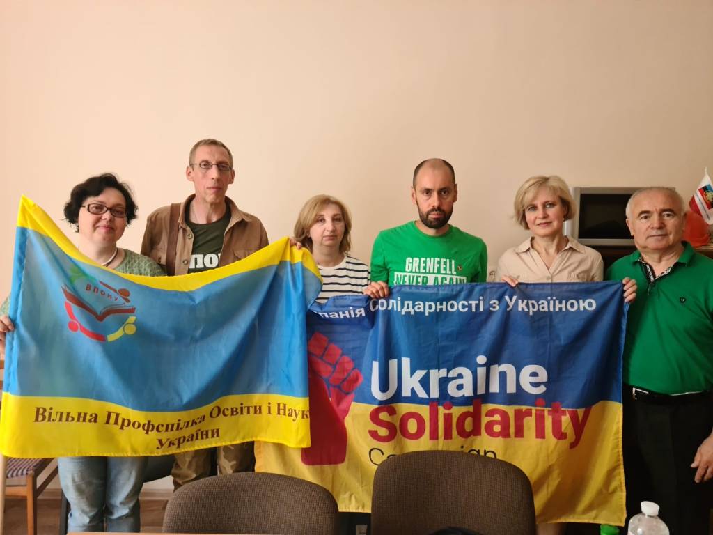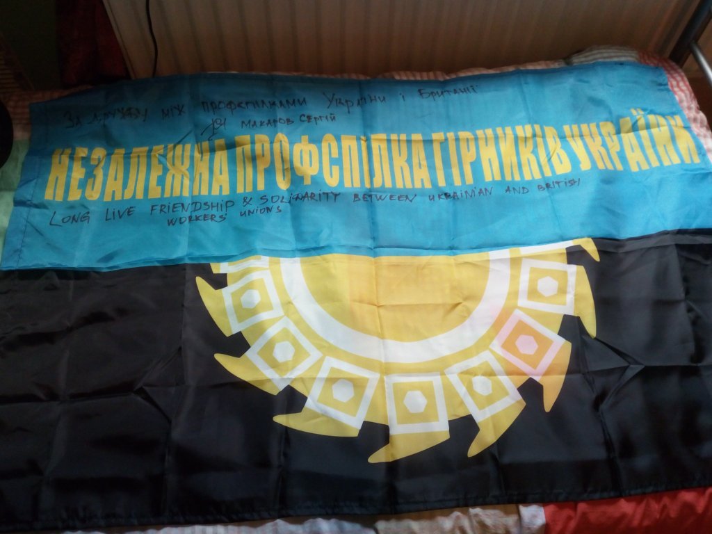 Our campaign was presented with a signed NPGU flag to take back to UK unions – inscribed in Ukrainian and English with: “Long live the friendship and solidarity of Ukrainian and British workers’ unions”.