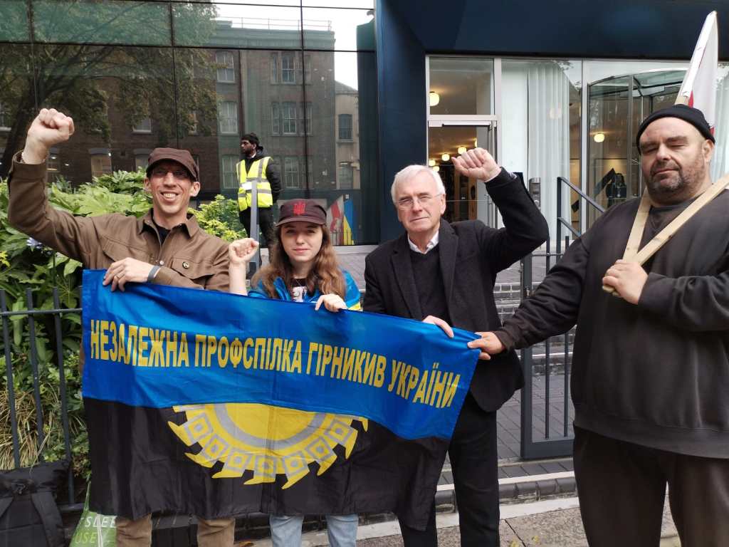 Despite this Ukraine Solidarity campaigners proceeded to protest at the London HQ as planned, and speakers included Ukrainian activist Anastasya Spivak, John McDonnell MP and Lambath UNISON Secretary Simon Hannah.