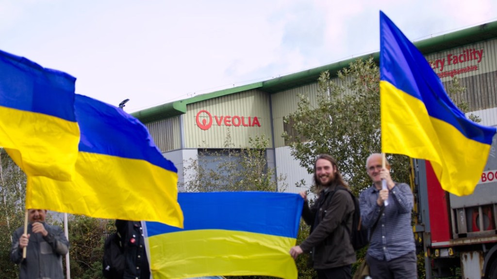On 29 September protests were held in London, Kyiv and in Nottinghamshire in solidarity with workers on strike at Veolia and in protest at the ongoing business operations by this company in Russia.