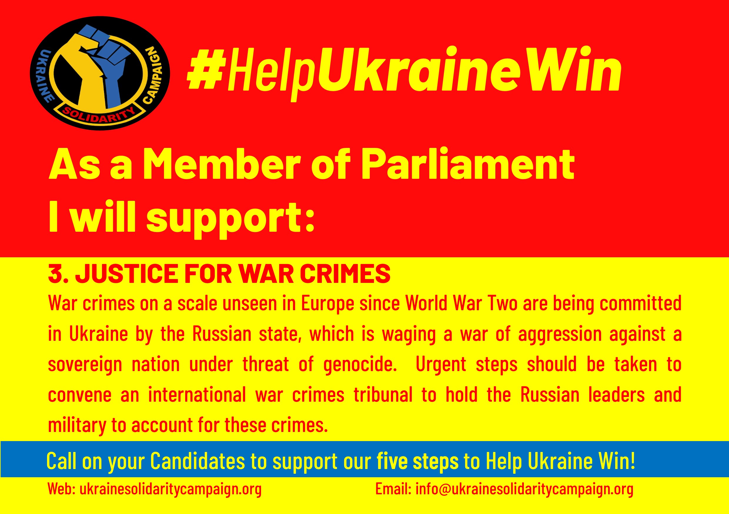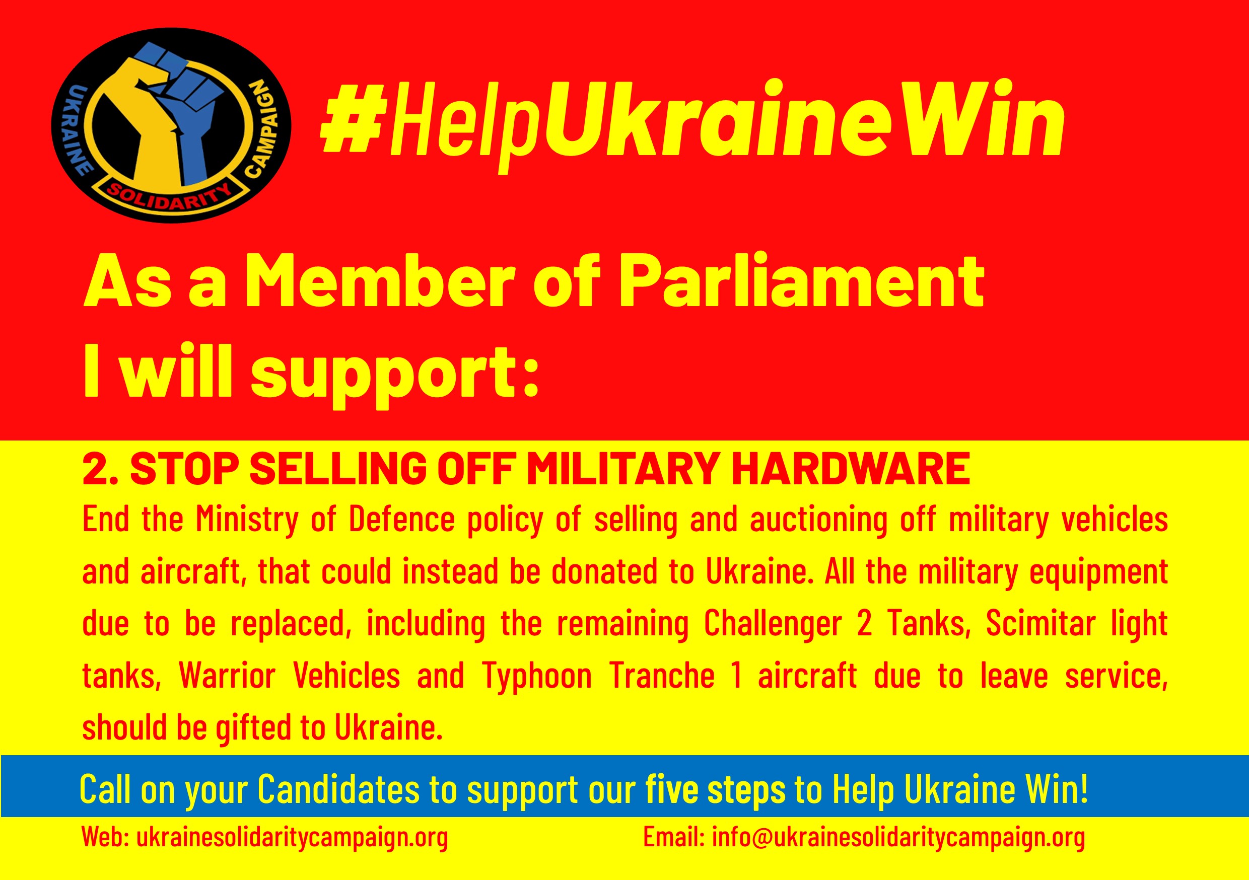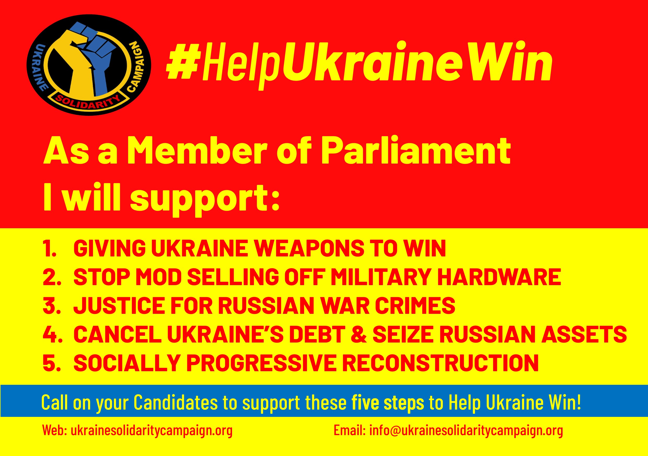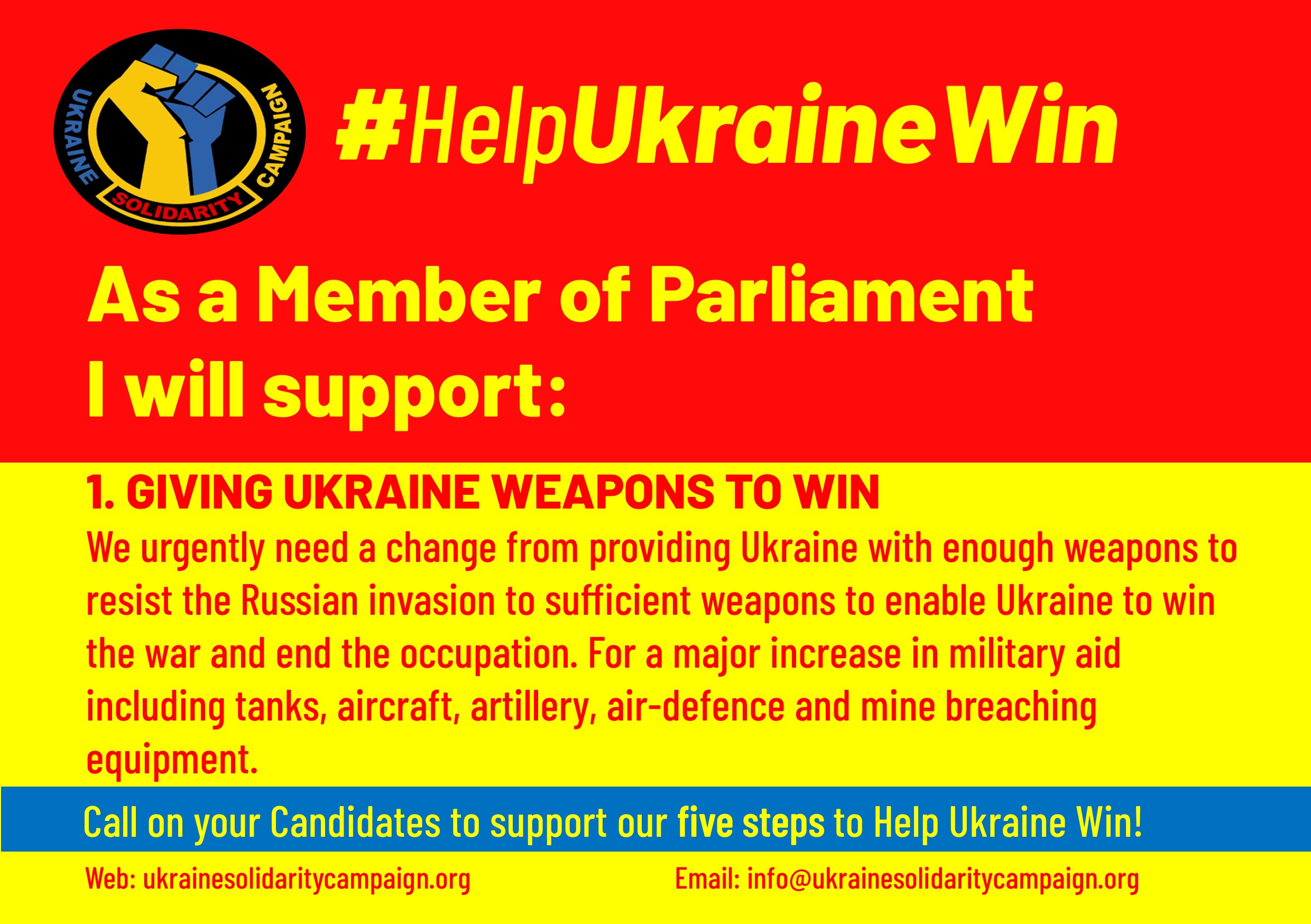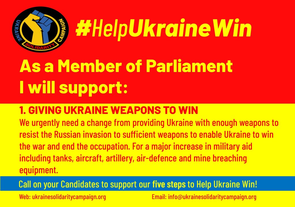 Please write to Parliamentary Candidates in your constituency asking then to support these five steps to help ensure Ukraine can win.