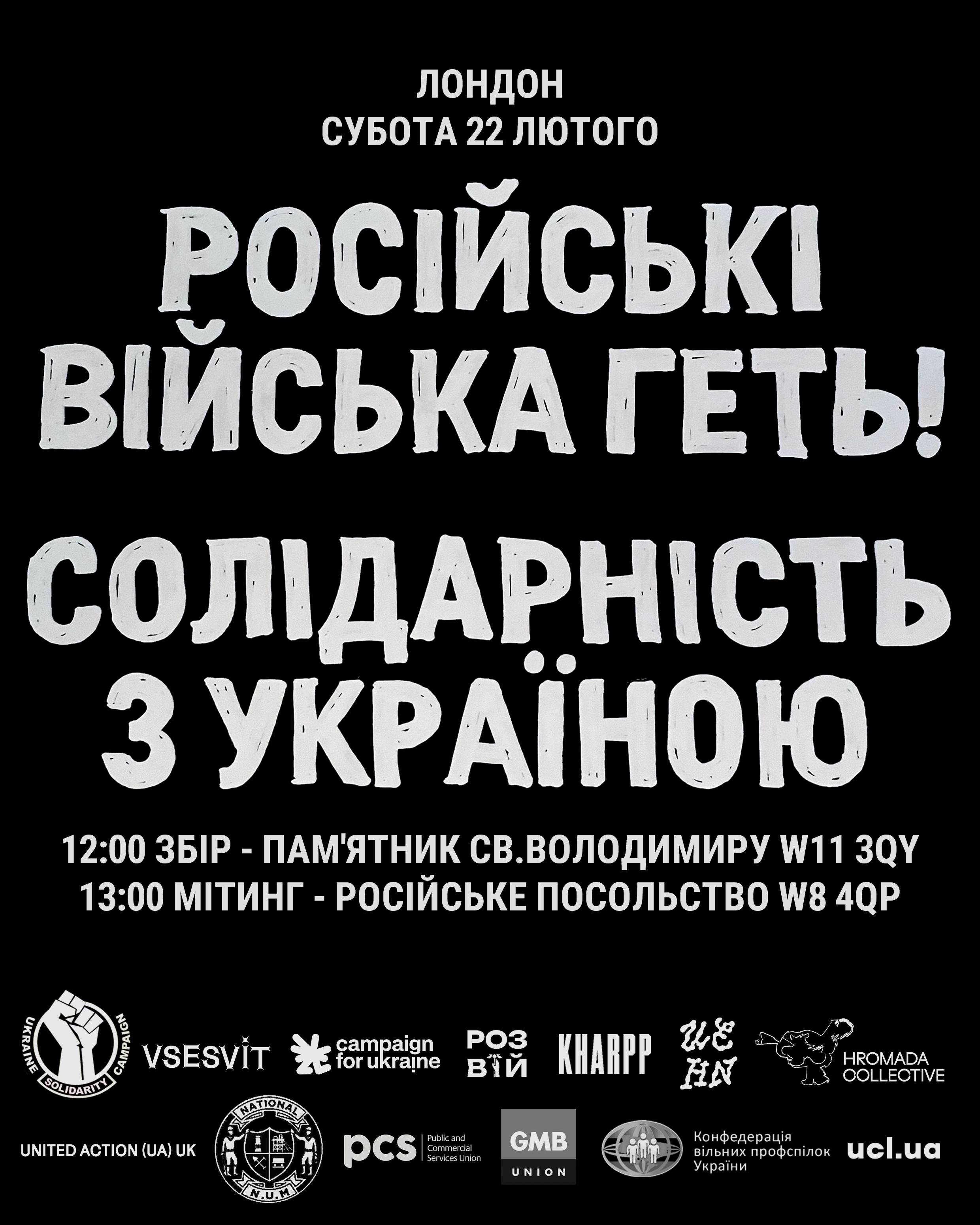 For more information, publicity materials, or if you or your organisation would like to sponsor / help organise, get in touch: info@ukrainesolidaritycampaign.org