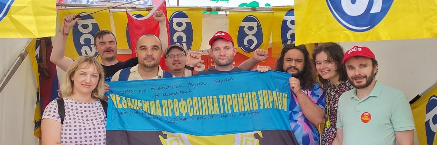 Ukraine Solidarity Campaign has affiliations from six national UK trade unions (UNISON public sector workers, ASLEF train drivers, PCS civil servants, UCU post-16 education workers, GMB private and public sector workers, and NUM mineworkers), in addition to branch, regional and other affiliations. The national unions affiliated have representatives on our steering committee; we also invite solidarity networks in unions that are not affiliated to send reps. Please ask your union or other organisation to affiliate and invite a speaker to discuss working together: email info@ukrainesolidaritycampaign.org