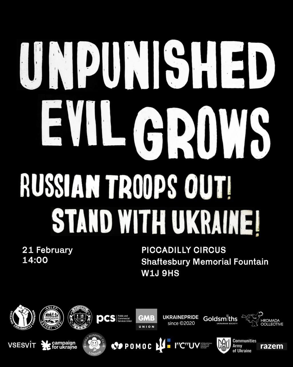 For the 4th anniversary of the full-scale invasion, join the London protest for Russian troops out and in solidarity with Ukraine – called by Vsesvit, Campaign for Ukraine and Ukraine Solidarity Campaign, and backed by a range of other Ukrainian and UK labour movement organisations
