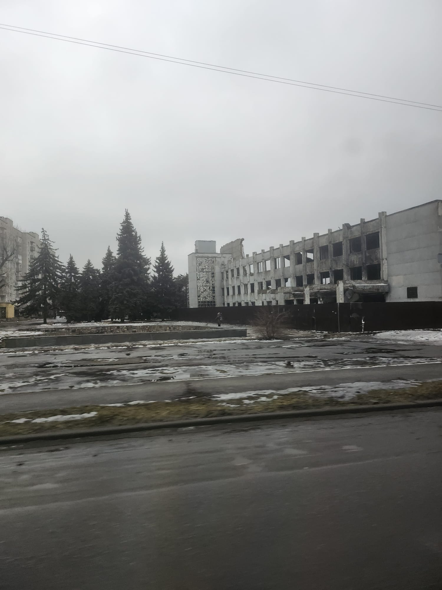 We met our comrades from Solidarity Campaign, who took us on a tour of the city, including to see the court house that was destroyed in a missile strike. Our guide, Sasha, knew someone killed in the attack.