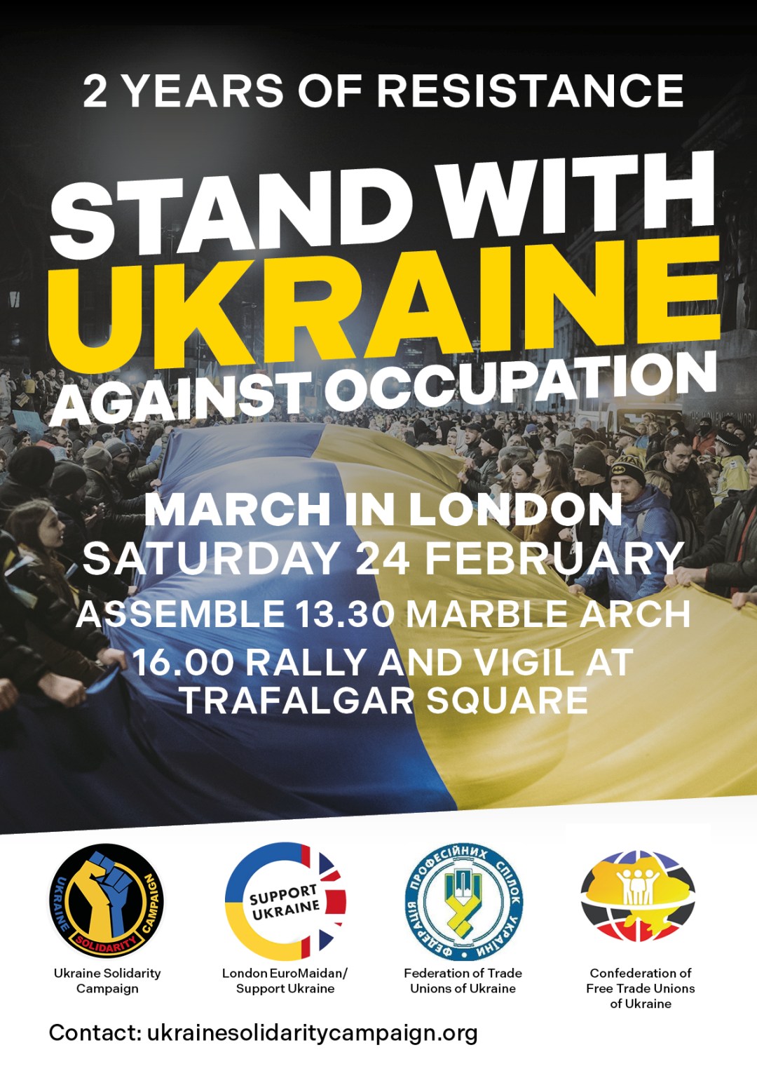 Join Ukrainian Protests on Saturday 24 February Confederation of Free Trade Unions (KVPU) Appeal for Global Solidarity Actions on the Anniversary of Russia’s Full-Scale Invasion of Ukraine Appeal for Global Solidarity Actions on the Anniversary of Russia’s Full-Scale Invasion of UkraineDear Sisters and Brothers,Members of the Confederation of Free Trade Unions of Ukraine (KVPU) express … Continue reading UKRAINIAN UNIONS CALL FOR SOLIDARITY ACTION ON ANNIVERSARY OF INVASION