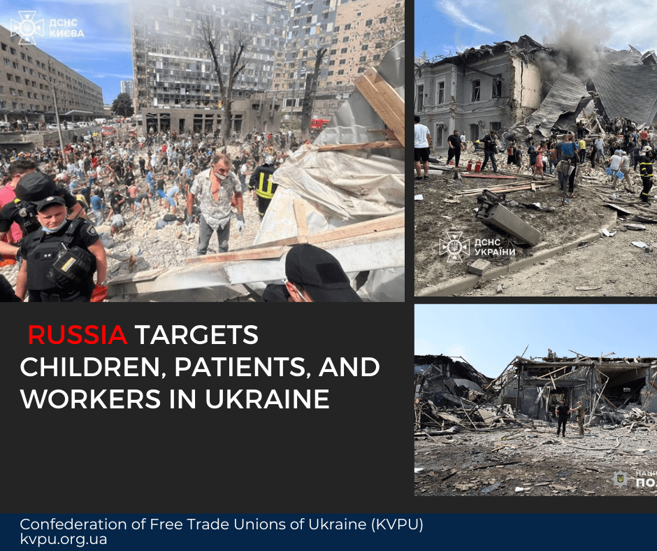 Statement by the Confederation of Free Trade Unions of Ukraine Dear Brothers and Sisters,The Confederation of Free Trade Unions of Ukraine (KVPU), a member organizationof the International Trade Union Confederation and the European Trade UnionConfederation, calls on the international community, the ITUC, the ETUC, and theirmember organizations, as well as the governments of democratic states, … Continue reading Russia is purposefully launching missile strikes on children, patients, and workers inUkraine
