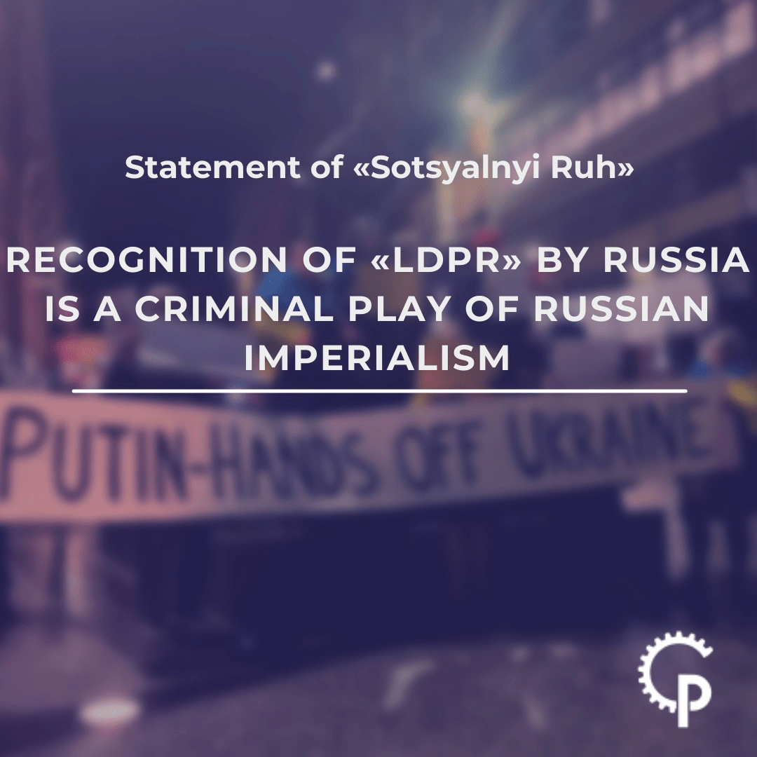 Ukrainian Socialists Condemn Intervention in Donbas Statement of 'Sotsialnyi Ruh': Recognition of LDPR by Russia is criminal play of Russian Imperialism Russia’s recognition of the Donetsk and Luhansk People’s Republics is a criminal game played by Russian imperialism Declaration of “Social Movement”, Kyiv 21 February 2022 recognition of the Donetsk and Luhansk People’s Republics is … Continue reading Russia’s Crime of IMPERIALISM